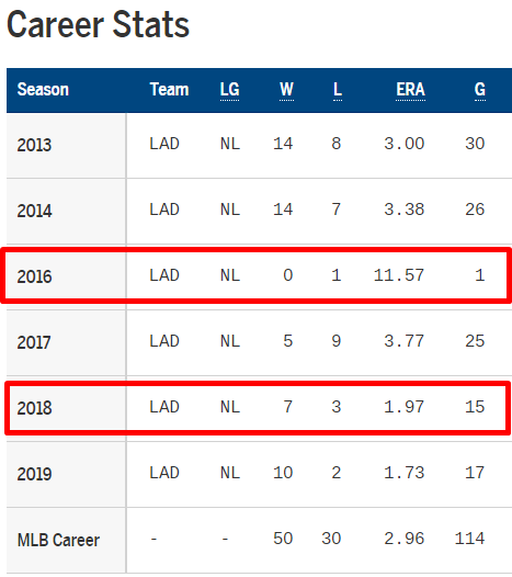 '쉽게 부상당하는 선수'라는 말은 2016년과 2018년에 부상으로 성적이 좋지 않은 점을 살짝 꼬집어 이야기하는 것 같습니다. 올해는 제발 무리하지 말고, 현 수준만 꾸준히 유지하기를 바래 봅니다. 근데, 최근 성적이 초반 성적보다 살짝 부진한 것 같아 걱정도 되지만, 잘할 수 있을 것이라고 기대합니다. 사이영상을 너무 염두에 두지 말고, 가볍게 부상당하지 않고 꾸준히 한 시즌을 마무리하기를 바랍니다.